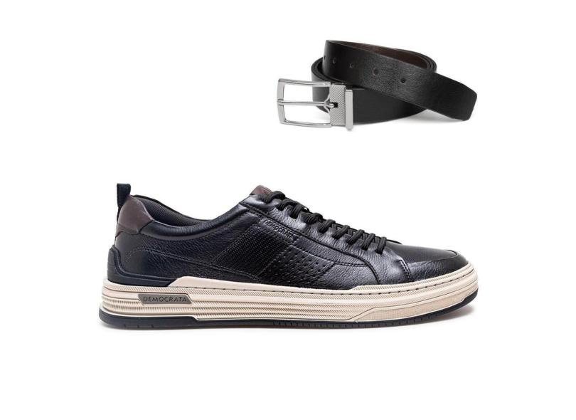 Tênis Democrata Masculino Denim Mike 240601+Cinto Masculino Dupla Face-Masculino