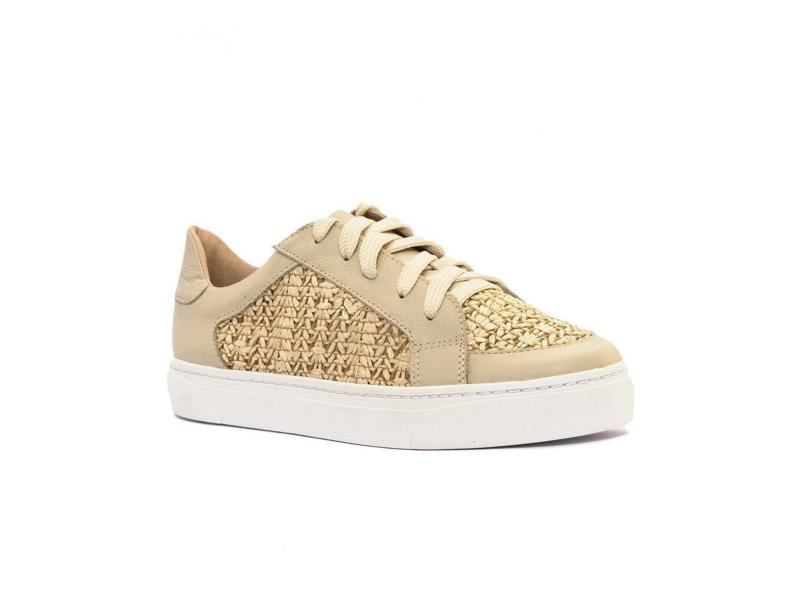 Tênis Em Couro Trama Off White-Feminino