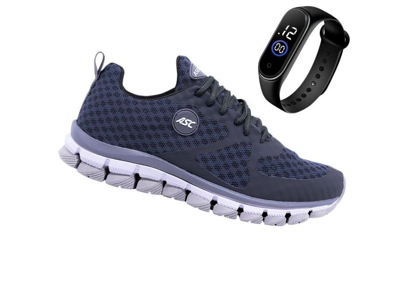 Tênis Esportivo Feminino e Masculino Asc Front Eficaz Para Caminhada Leve Macio + Relógio-Unissex