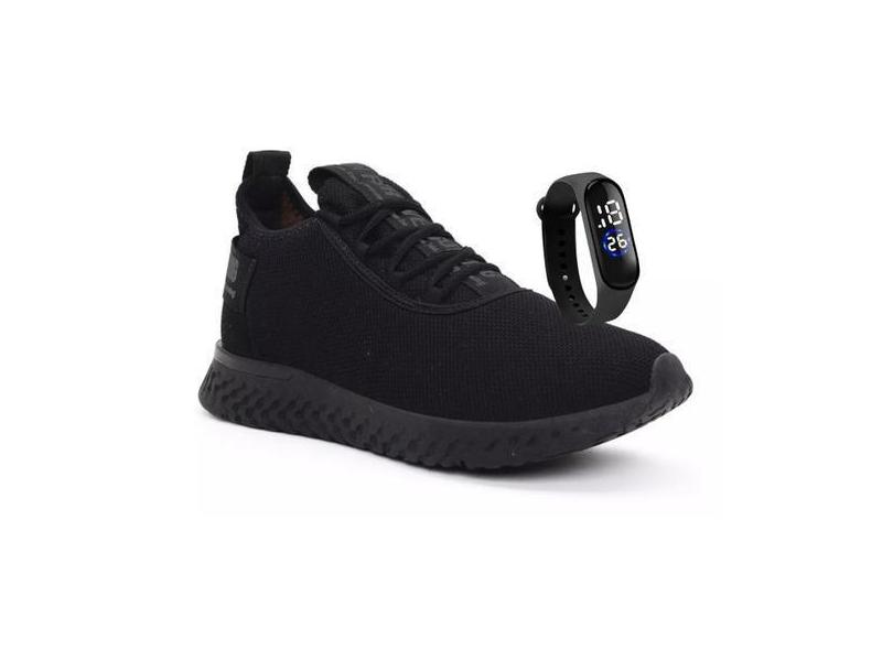 O menor preço encontrado no Brasil para Tênis Esportivo Masculino Para Academia De Caminhada Preto + Relógio - atualmente é R$ 78,00.