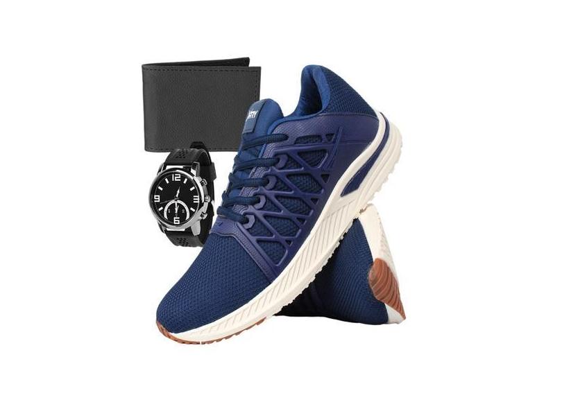 Tênis Esportivo X-Try + Relógio de Ponteiro e Carteira Masculina - Sap
