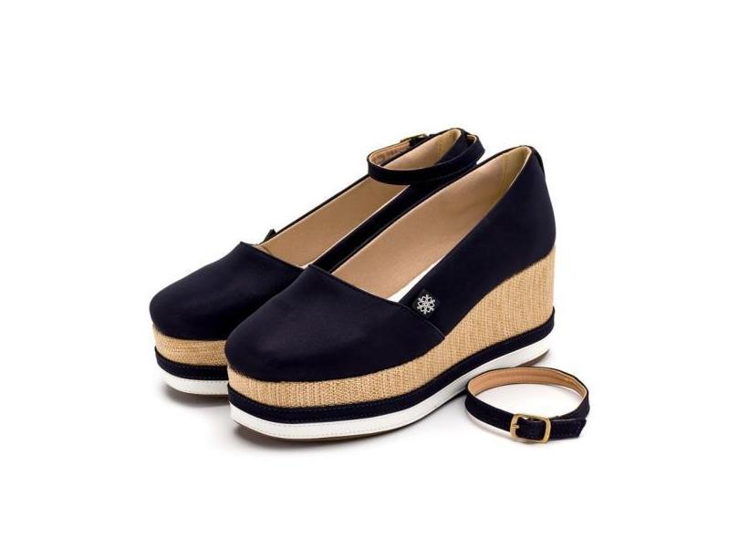 Tênis Feminino Anabela Salto Médio Napa Azul Marinho - Sete Sales