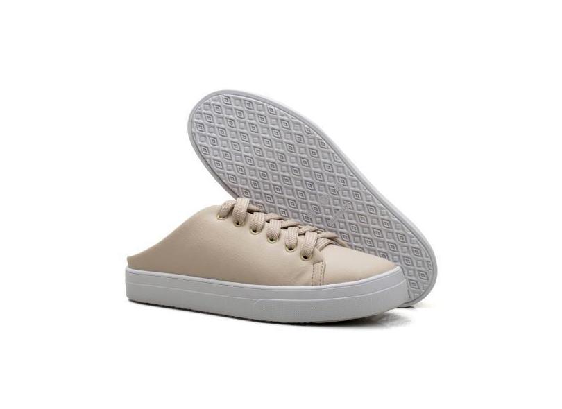Tênis Feminino Bege Barato Sapatênis Aberto No Calcanhar Calce Fácil M