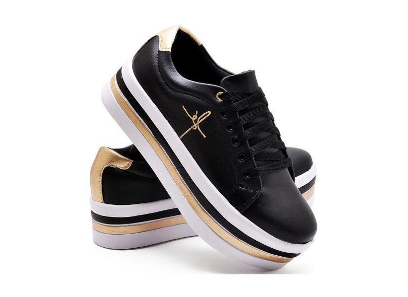 Tênis Feminino Bordado Fé Preto Salto Plataforma Anabela Casual - Gugi