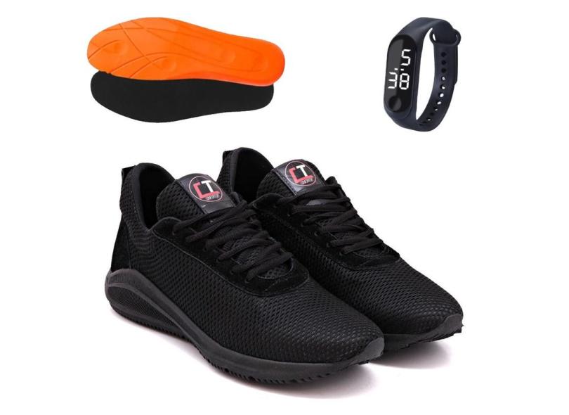 Tênis Feminino Caminhada Academia De Amarrar Com Palmilha Gel + Relógio