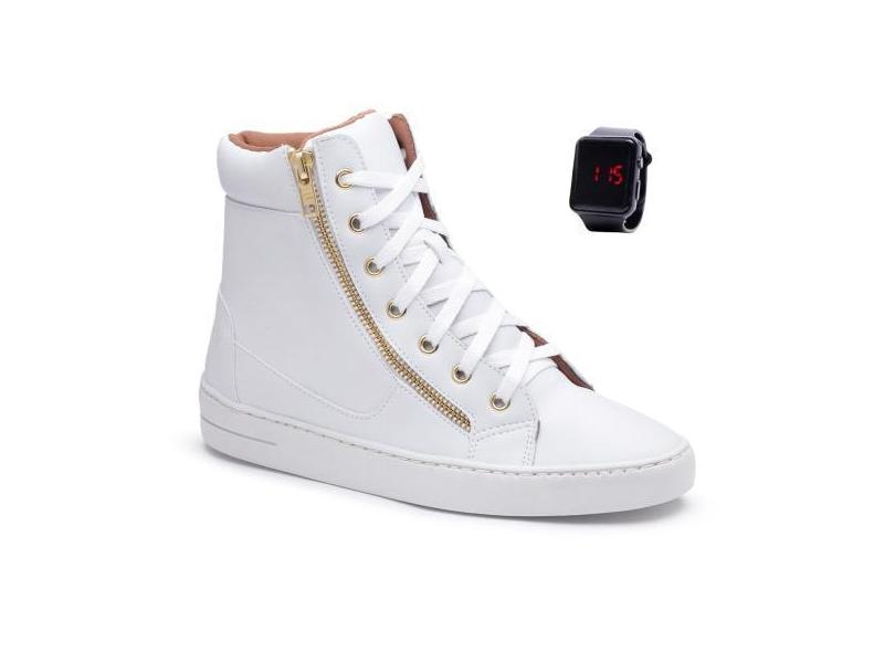 O menor preço encontrado no Brasil para Tênis Feminino Cano Alto Botinha Academia + Relógio (Ref:Th118-119-1 atualmente é R$ 173,82.