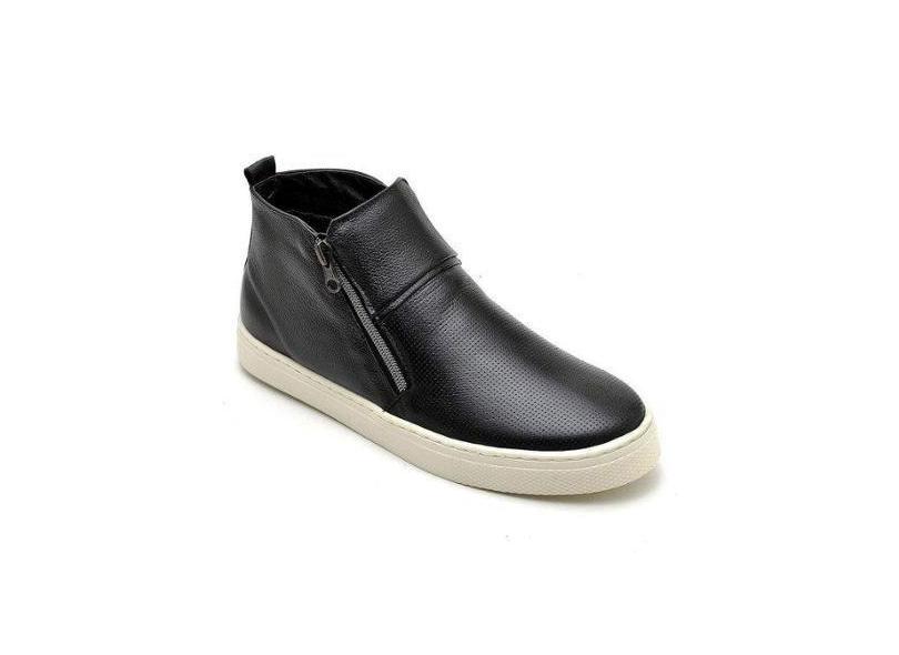 Tênis Feminino Cano Alto Couro Sola Reta Moda Casual Estilo Botinha Confortável Para Trabalho-Feminino