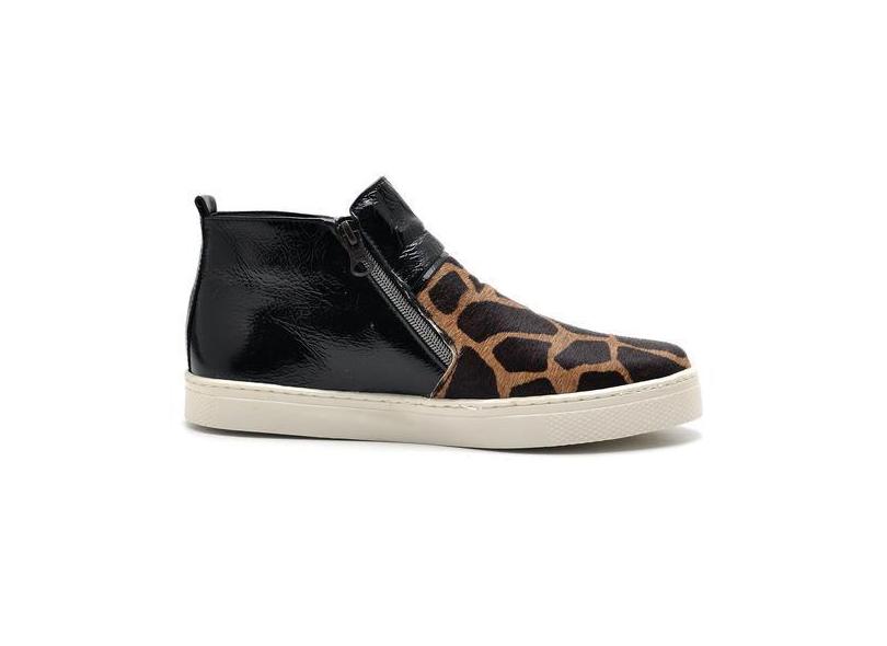Tênis Feminino Cano Alto Estilo Botinha Casual Couro Moda Slip On Pret