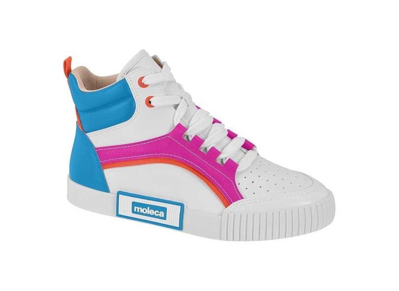 Tênis Feminino Cano Médio Branco Azul Pink Laranja Moleca 5740.205-Feminino