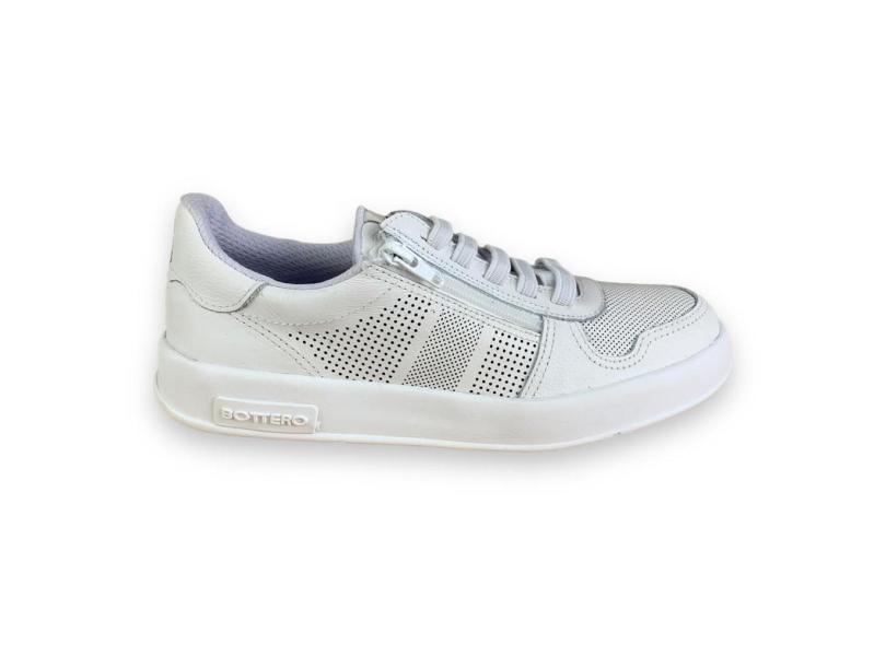 Tenis Feminino Casual Bottero Couro Legitimo Branco Confort