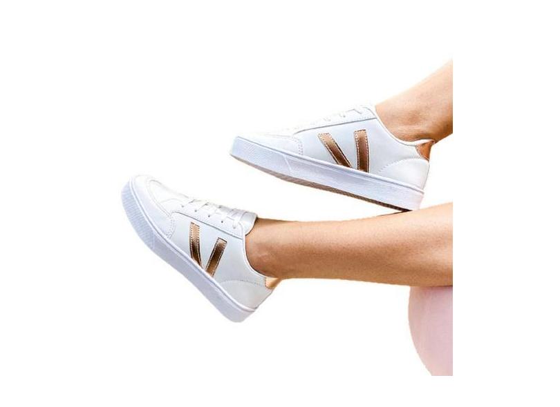 Tênis Feminino Casual Branco Com Rose Gold E Branco Com Pink - Vanessa
