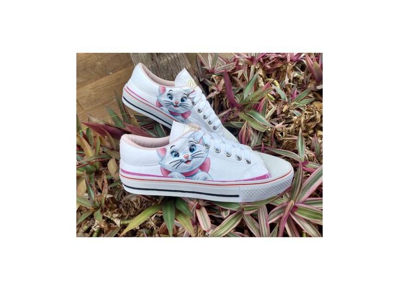 Tenis Feminino Casual Branco Confortável Jovens Adultos Tecido Estampa
