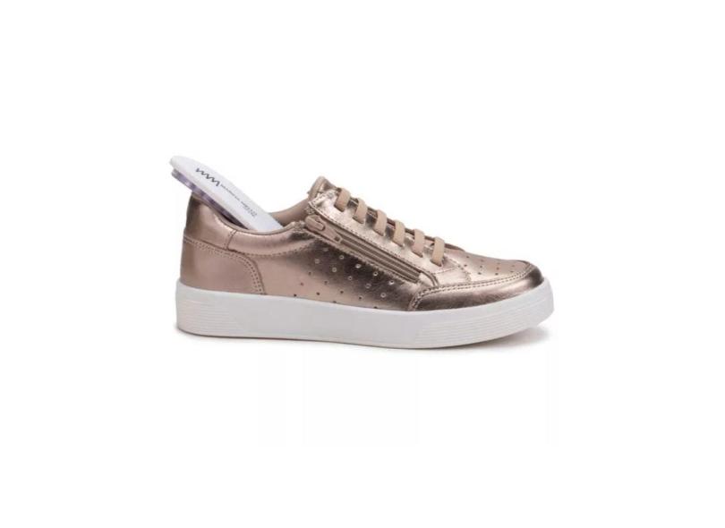Tênis Feminino Casual Champagne Metalizado em Couro Grazi