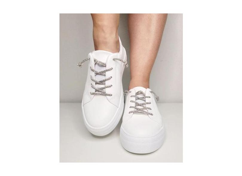 Tênis Feminino Casual Com Cadarço De Strass - Bebecê - Branco / Brilho