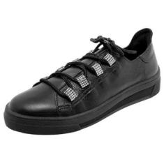 Tenis Feminino Casual Conforto Couro Strass CACCI-Feminino
