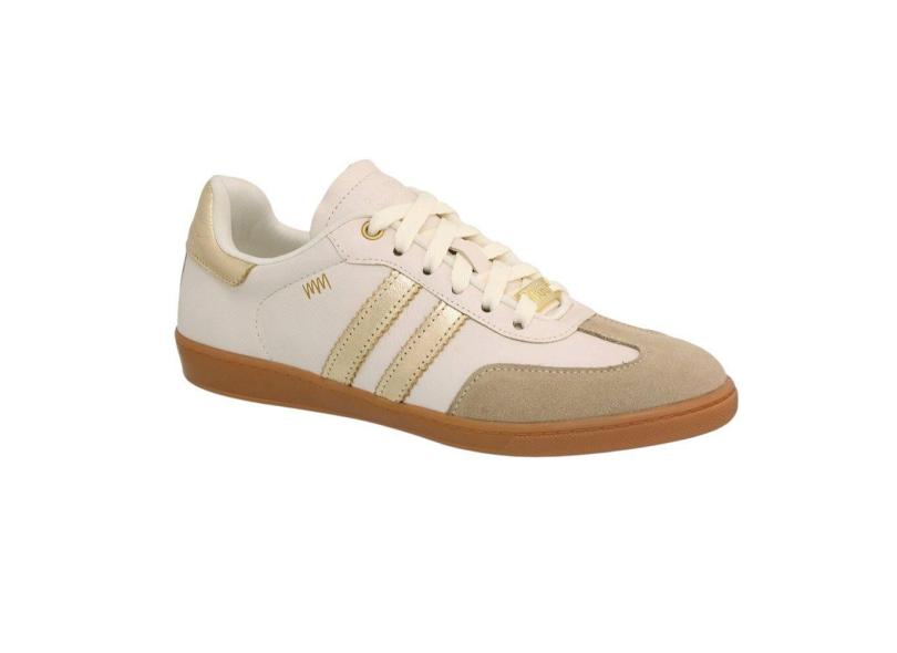 Tênis Feminino Casual Couro Emma Creme Dourado Marina Mello