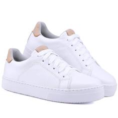 Tênis Feminino Casual Couro Liso Cano Curto Cadarço Mr. Gutt