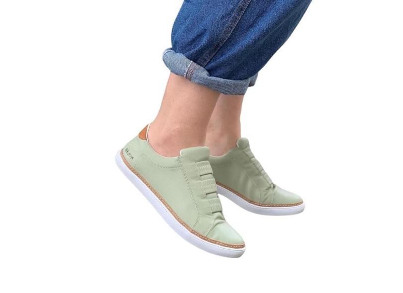 Tênis Feminino Casual em Couro Sola Baixa Pistache Parô-Feminino