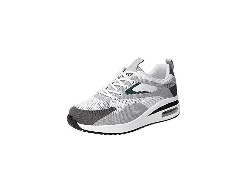 Tênis feminino casual feminino com cadarço plano respirável fundo grosso malha casual tênis de corrida sapatos esportivos (branco, 37)