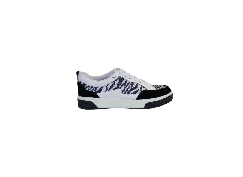 Tênis Feminino Casual Lantejoula Branca Paete Zebra Brilhos