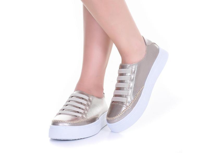 Tênis Feminino Casual Metalizado de couro Ajuste Elástico - Izabela Araújo-Feminino