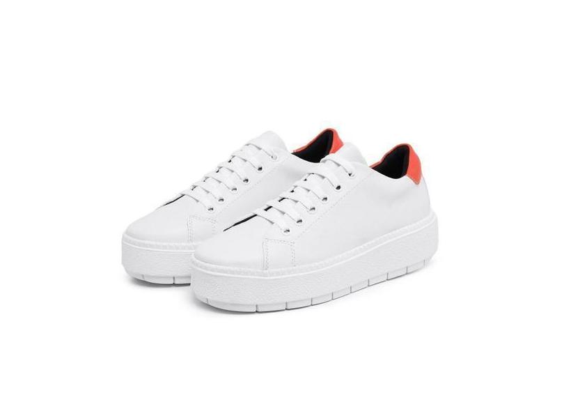 Tênis Feminino Casual Plataforma Flatform Branco Traseirinha Laranja -