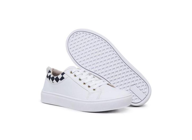 Tênis Feminino Casual Xadrez Branco Cano Baixo Conforto - Giulia Anton