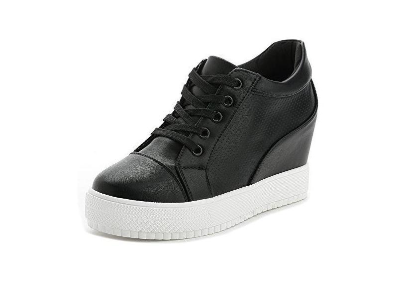 Tênis feminino com salto oculto plataforma alta no tornozelo sapatos de caminhada modernos para noivas e casamentos, Preto-7,6 cm Altura do salto, 34