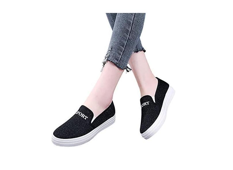 Tênis feminino confortável antiderrapante respirável sola macia leve sapatos casuais de lona (preto, 35)