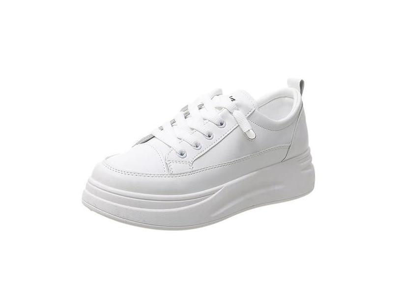 Tênis feminino confortável plataforma sola grossa branco moderno casual cano baixo cadarço macio antiderrapante tênis de caminhada, Branco, 36
