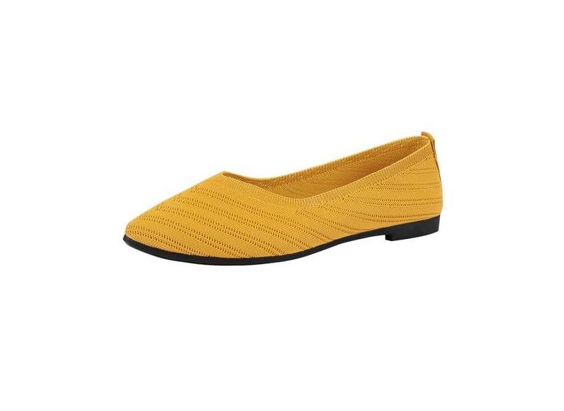 Tênis feminino de cor sólida, moderno, leve, confortável, vazado, de malha, casual, sapatos únicos, Amarelo, 38