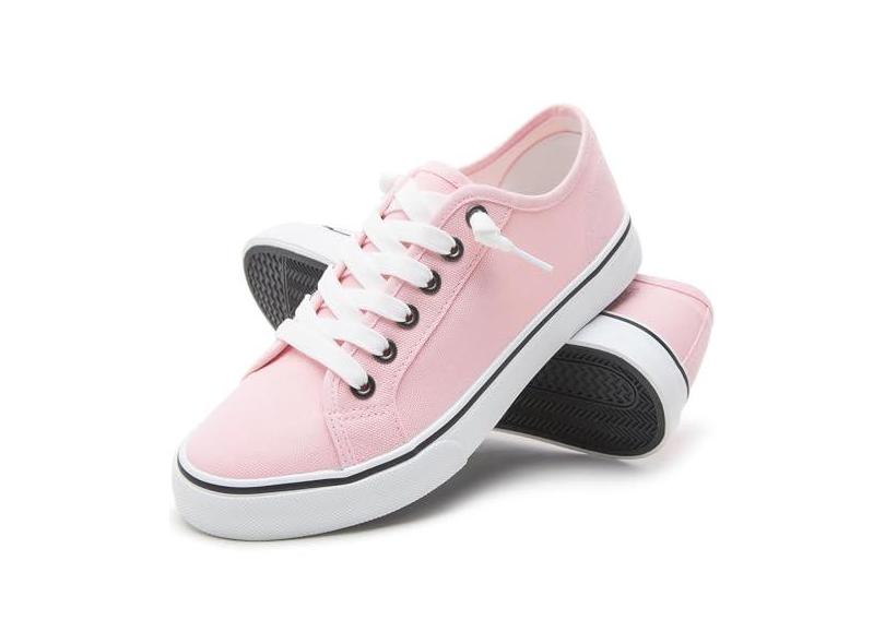 Tênis feminino de lona, antiderrapante, casual, cadarço, lona, cano baixo, branco, mocassim para mulheres, moderno, preto, rosa, 38