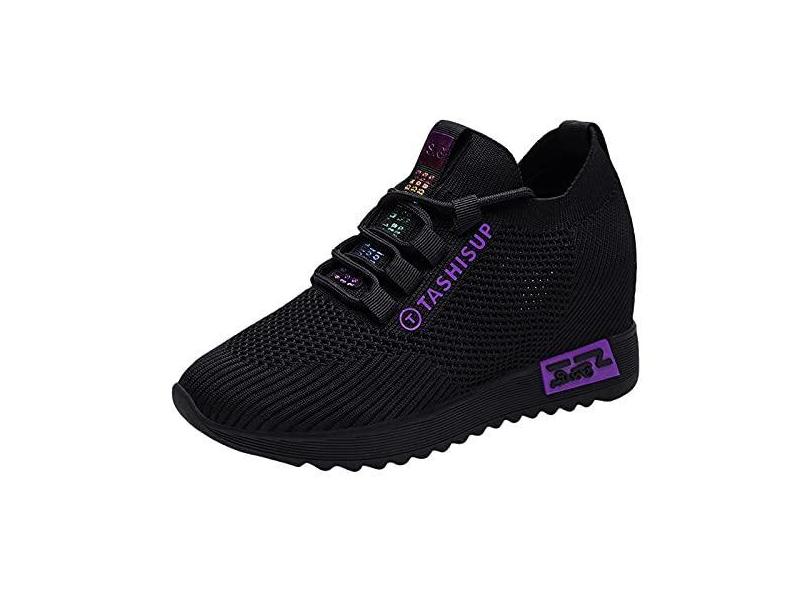 Tênis feminino de suporte de arco casual interno para corrida tênis esportivo feminino respirável malha renda (roxo, 37)