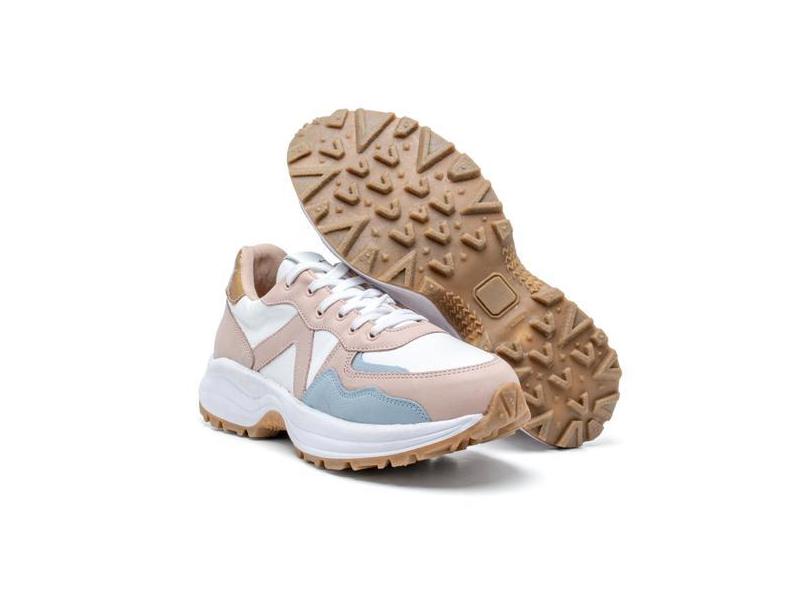 Tênis Feminino Em Couro Sneaker Chunky Com Forro Espumado 2051 Rosa -