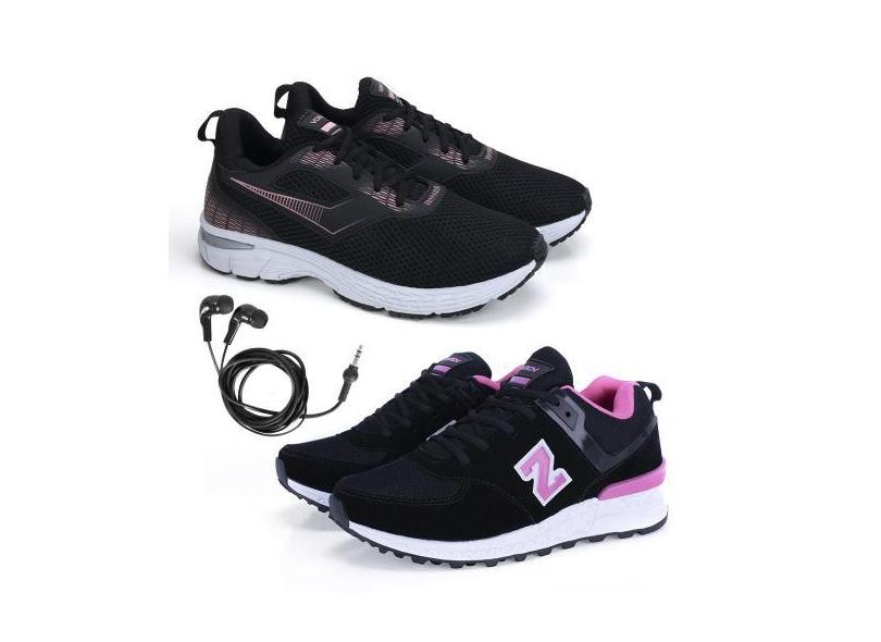 Tênis Feminino Esporte Academia + Fone de Ouvido Fio Kit 2 - BFK, Pret
