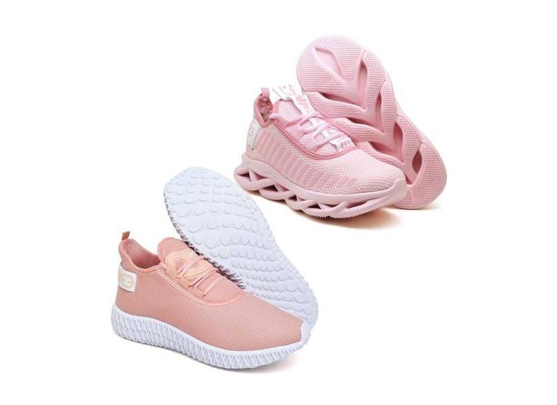 Tênis Feminino Esportivo Caminhada 2 Pares Modelos Diferentes Rosa/Nud