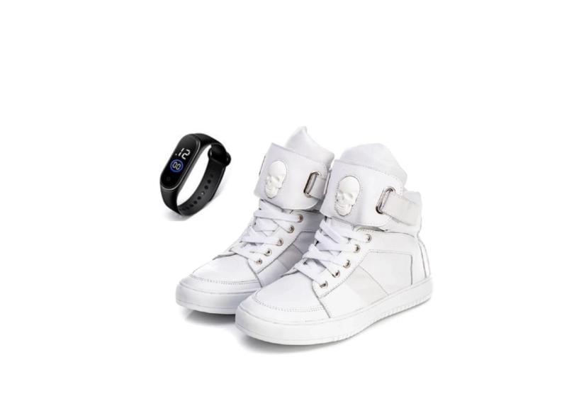 Tenis Feminino Fitness Botinha Academia Couro + Relógio-Feminino