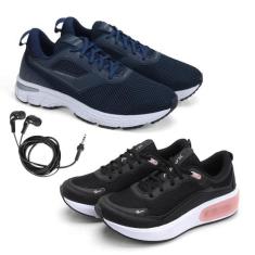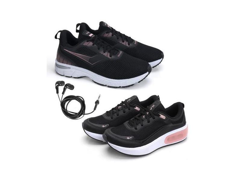 Tênis Feminino Fitness Esporte + Fone de Ouvido Fio Kit 2 - BFK, Preto