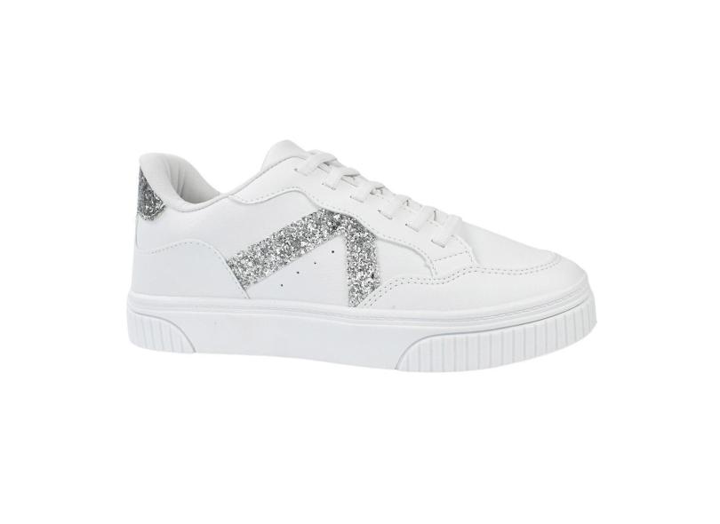 Tênis Feminino Godiva Casual Maxxi Glitter Branco Prata-Feminino