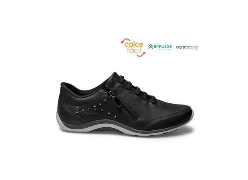 Tenis Feminino Kolosh Casual Preto Com Ziper Detalhe Lateral