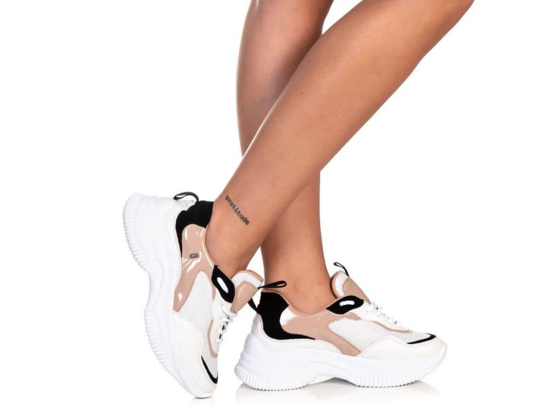 O menor preço encontrado no Brasil para Tênis Feminino Plataforma Chuncky Blogueira Branco/Nude Academia Estilo Shoes atualmente é R$ 119,90.
