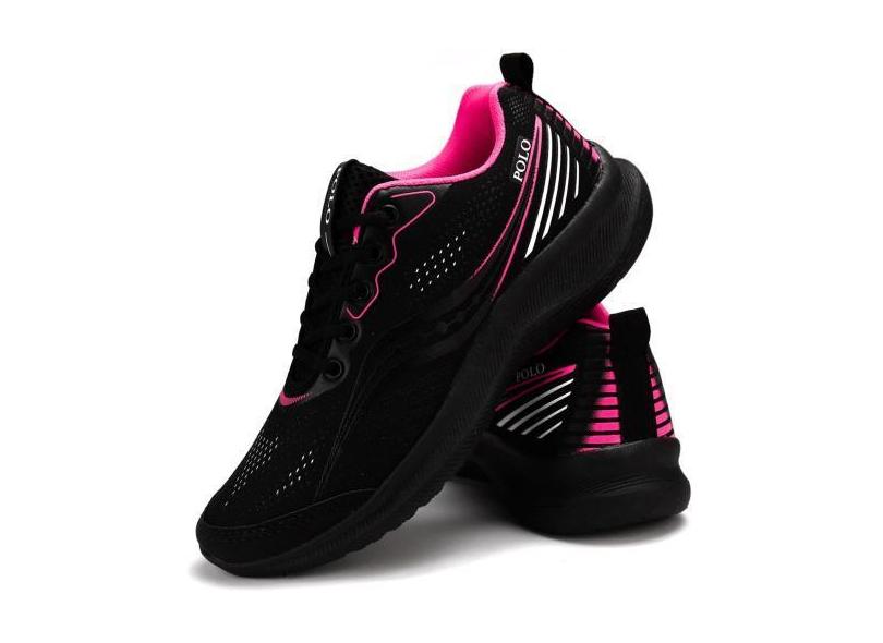 Tênis Feminino Polo Running Preto Pink Para Caminhada Academia - M.S,