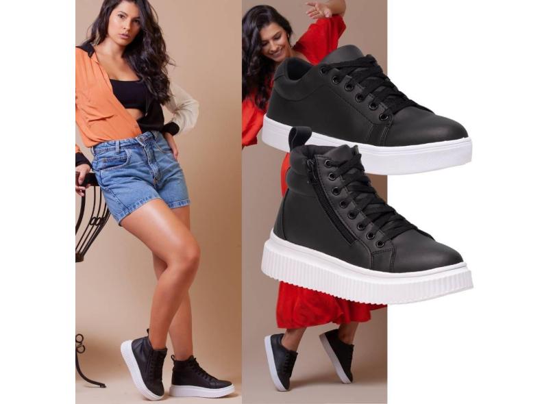 O menor preço encontrado no Brasil para Tênis Feminino Preto + Coturno Plataforma Preto Dois Estilos Ousados Que Elevam Qualquer Look. atualmente é R$ 159,00.