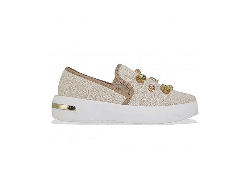 Tênis Feminino Slip On Pedrarias Natural Linho Vizzano 1354.114