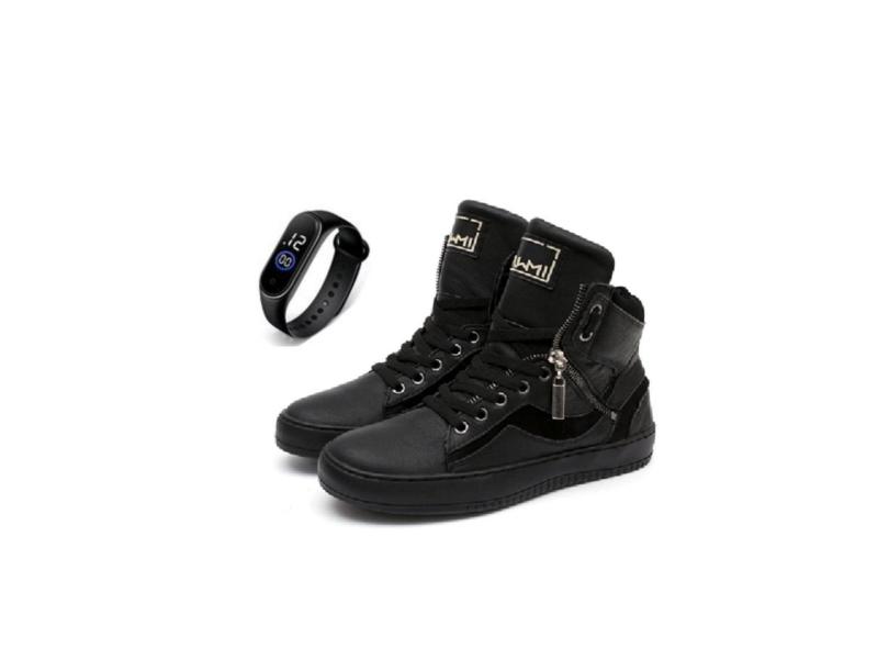 Tenis Feminino Sneaker Fitness Academia Couro com Ziper + Relógio-Feminino