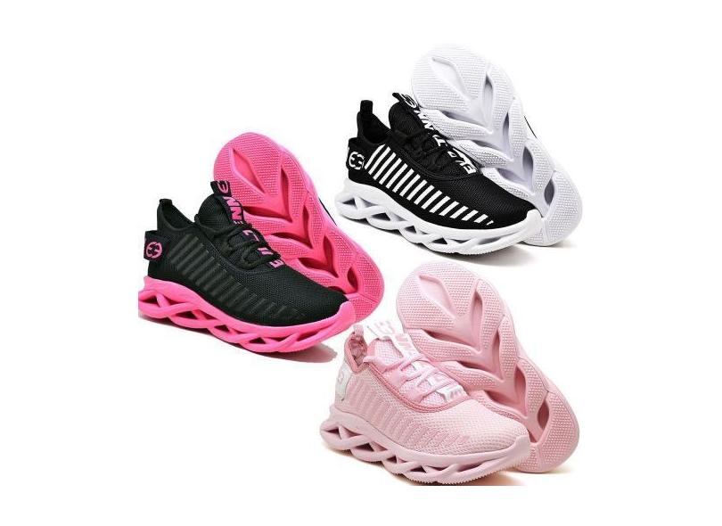 Tênis Feminino Solado Confort Trançado Esportivo - 3 Pares Preto E Ros