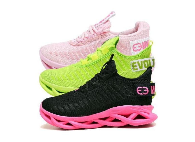 Tênis Feminino Solado Confort Trançado Esportivo - 3 Pares Verde E Ros