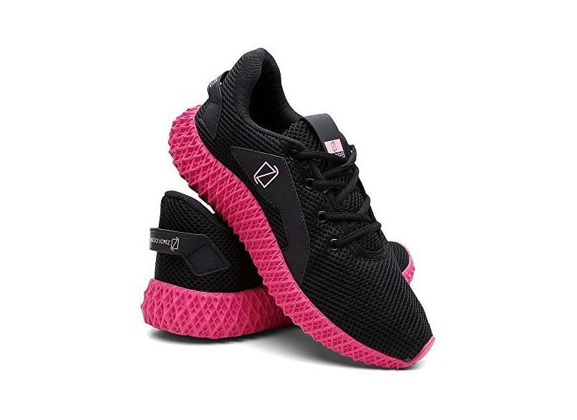 Tênis Feminino Sport Academia Ultra Leve e Macio Preto - Preto/Rosa - 35