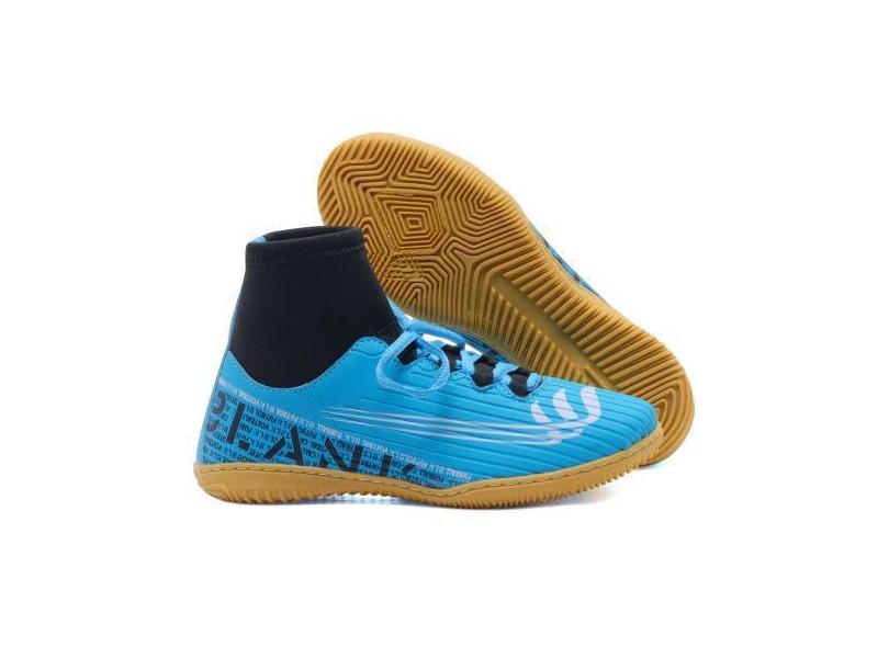 Tênis Futsal Cano Alto Chuteira Quadra Azul Com Solado Costurado Antid