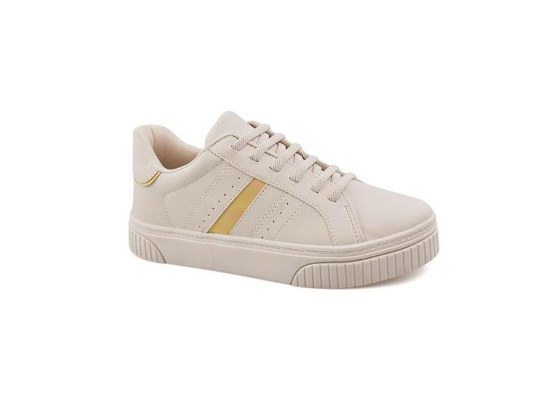Tênis Godiva Casual Napa Recortes Feminino Branco Creme